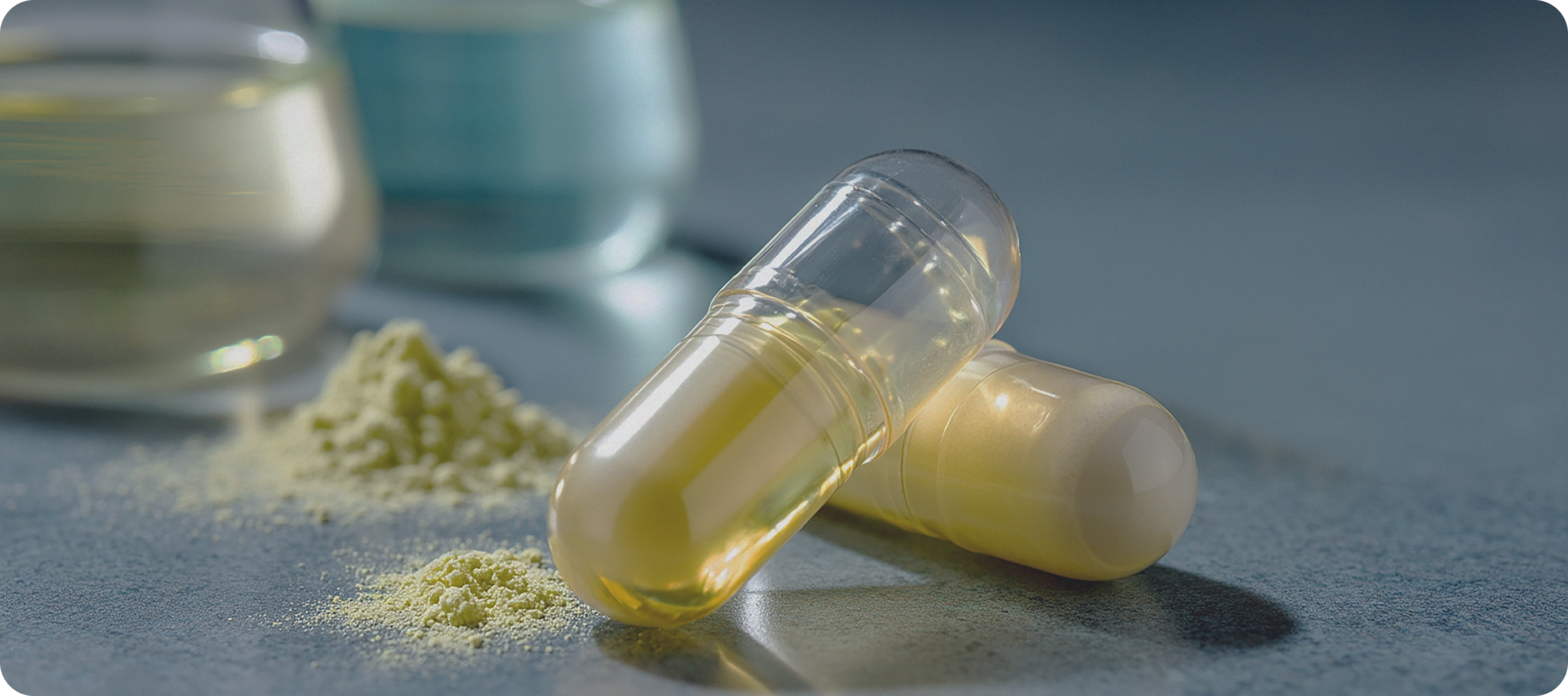 Dual-cap design separates and times ingredient release; DHA is absorbed from the outer capsule, while the inner capsule gradually releases the remaining nutrients.